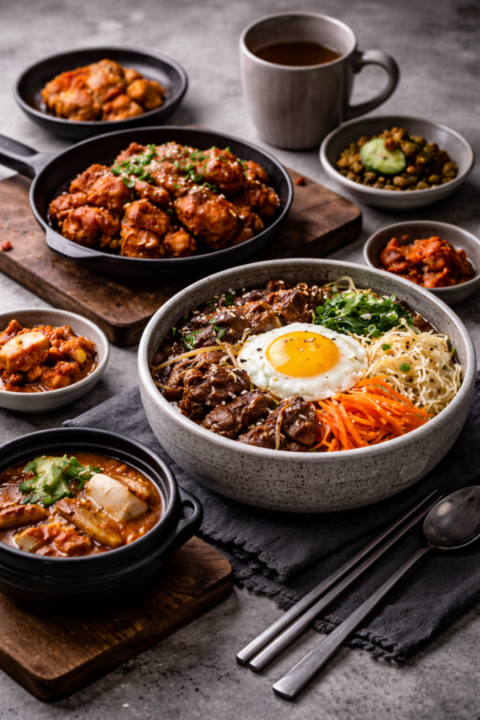 A. 매운 정도가 너무 세지 않고, 비주얼이 강한 요리들이 인기가 높습니다. 예를 들어 치즈가 듬뿍 올라가거나, 비빔 소스 색감이 강한 요리가 해외 커뮤니티에서 자주 공유됩니다.